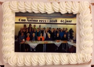 Maandagavond 25 juni was het dan zover. Vrouwenkoor Con Anima vierde haar 65ste verjaardag. Dat is natuurlijk een feestje waard, dus op onze wekelijkse repetitie maandagavond vloeide de champagne rijkelijk en was er een heerlijke taart versierd met een mooie foto van het hele koor. Voor nog meer foto’s kijk in ons fotoalbum op deze website.